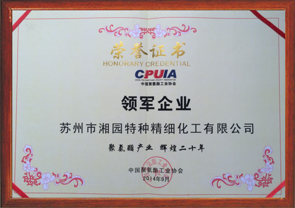 获评中国聚氨酯工业协会“领军企业”称号