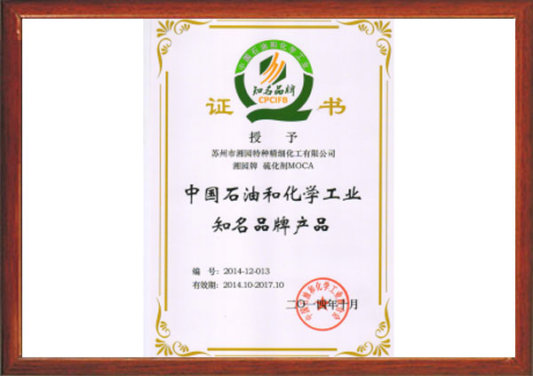 “best365足球官网牌”聚氨酯橡胶硫化剂MOCA被授予中国石油和化学工业联合会知名品牌产品