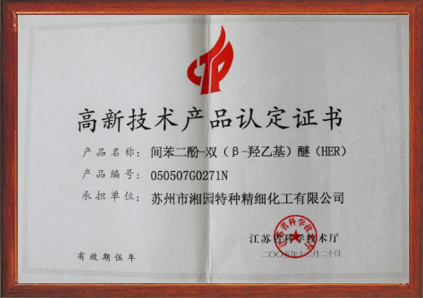 间苯二酚-双(β-羟乙基)醚(HER)被认定为江苏省高新技术产品