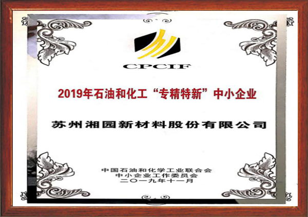 获评2019年度石油和化工“专精特新”中小企业