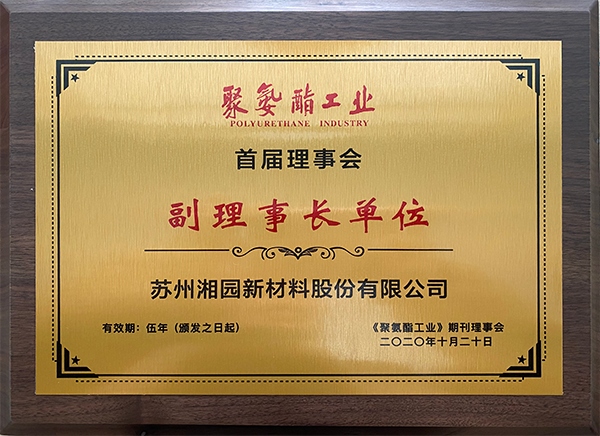 获评《聚氨酯工业》期刊理事会副理事长单位