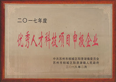 获评为2017年度优秀人才科技项目申报企业