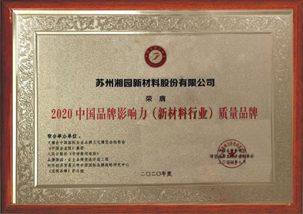 获评2020中国品牌影响力(新材料行业)质量品牌企业