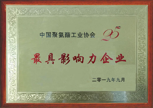 获评中国聚氨酯工业协会最 具影响力企业