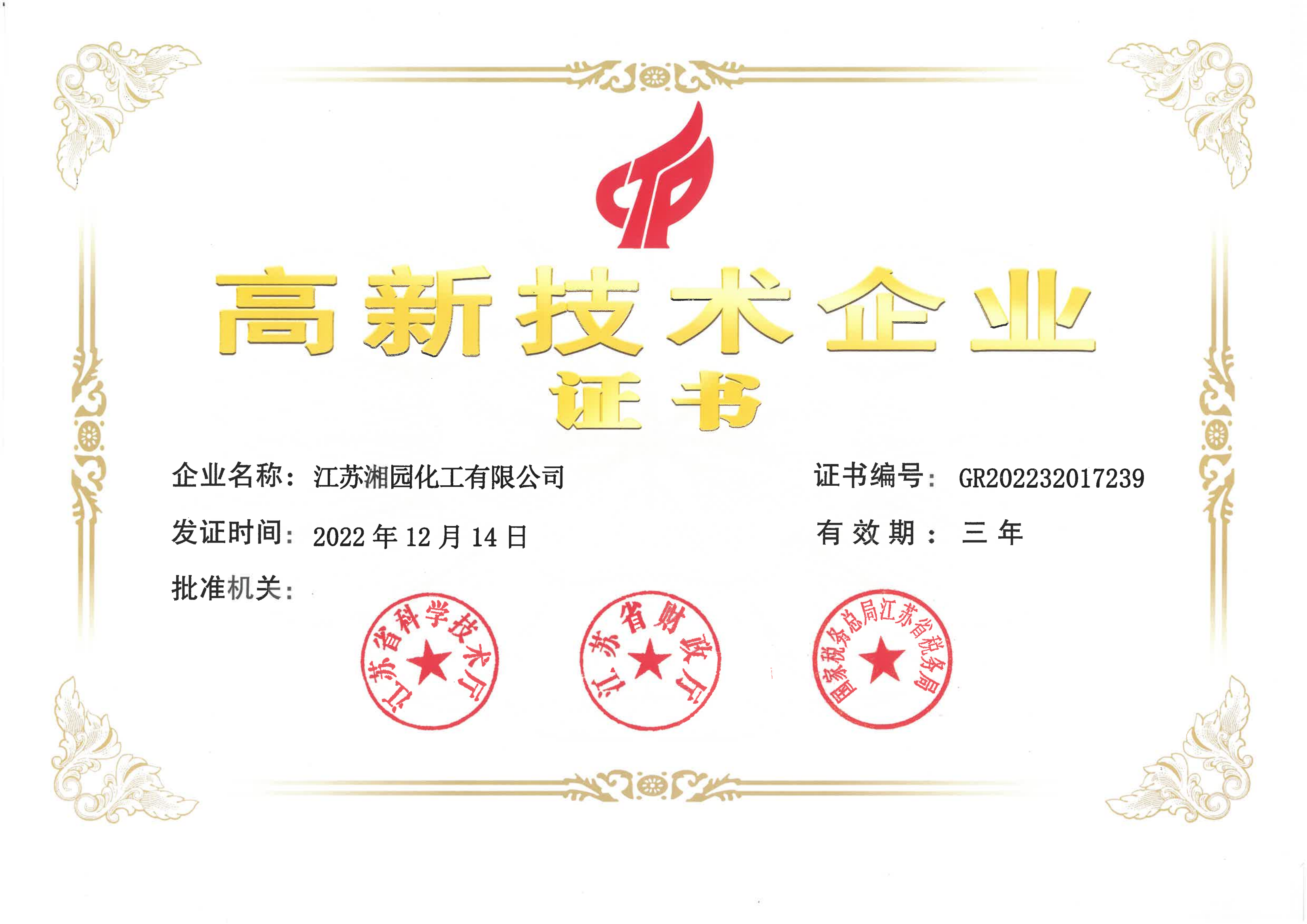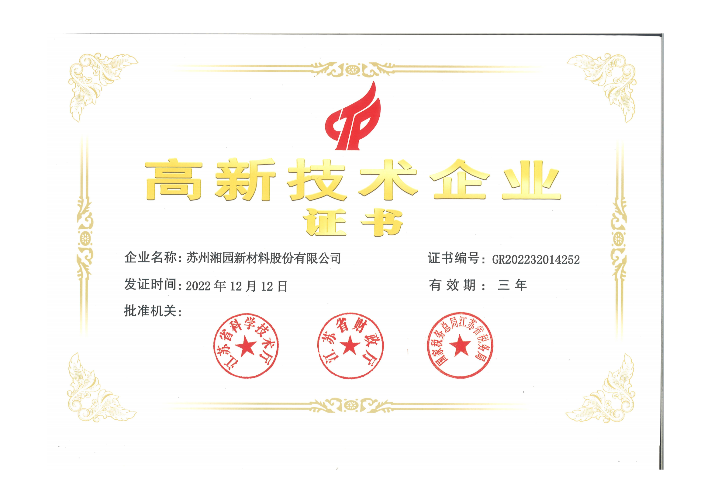 获评为江苏省高新技术企业(江苏best365足球官网)