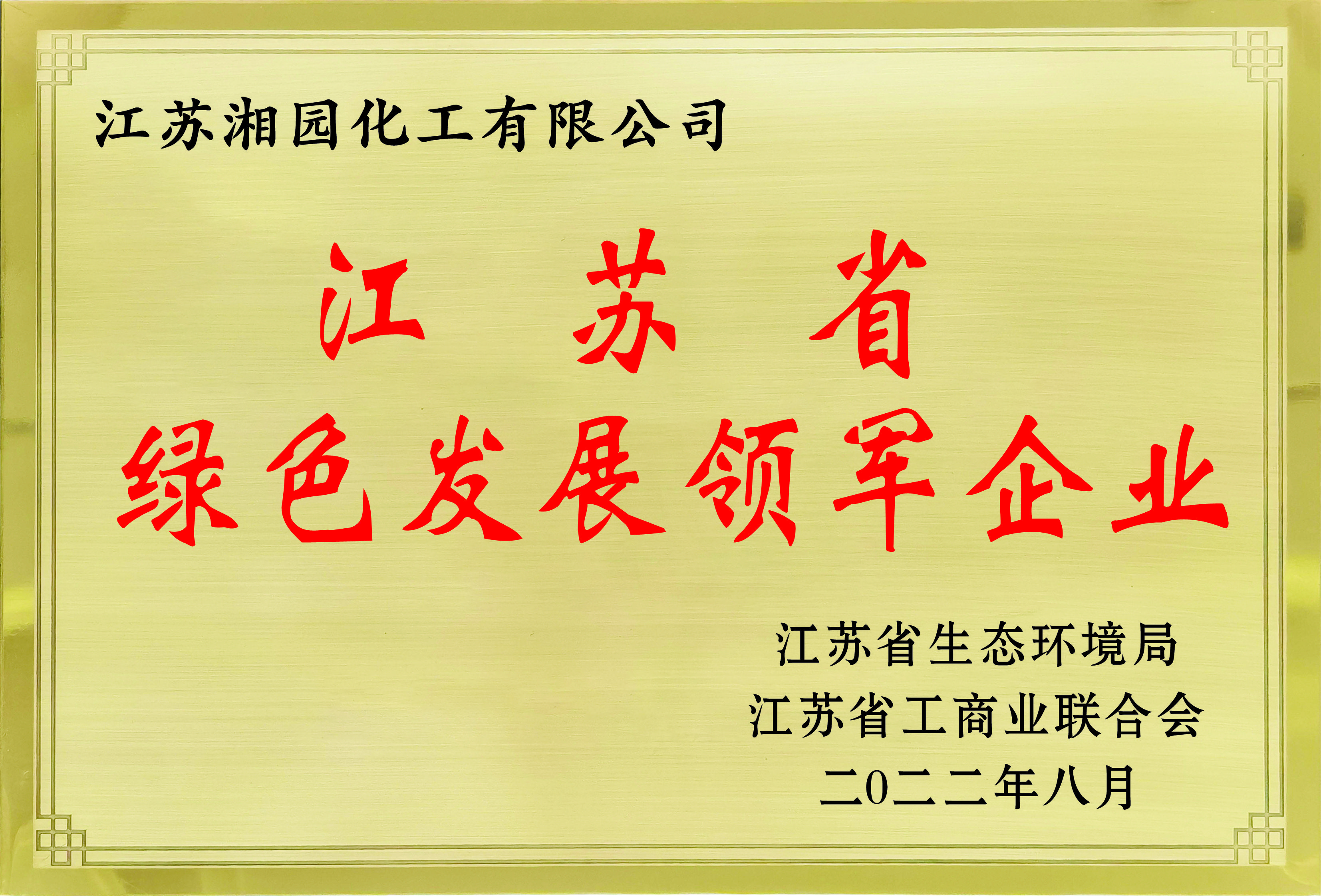 获评为江苏省绿色发展领军企业