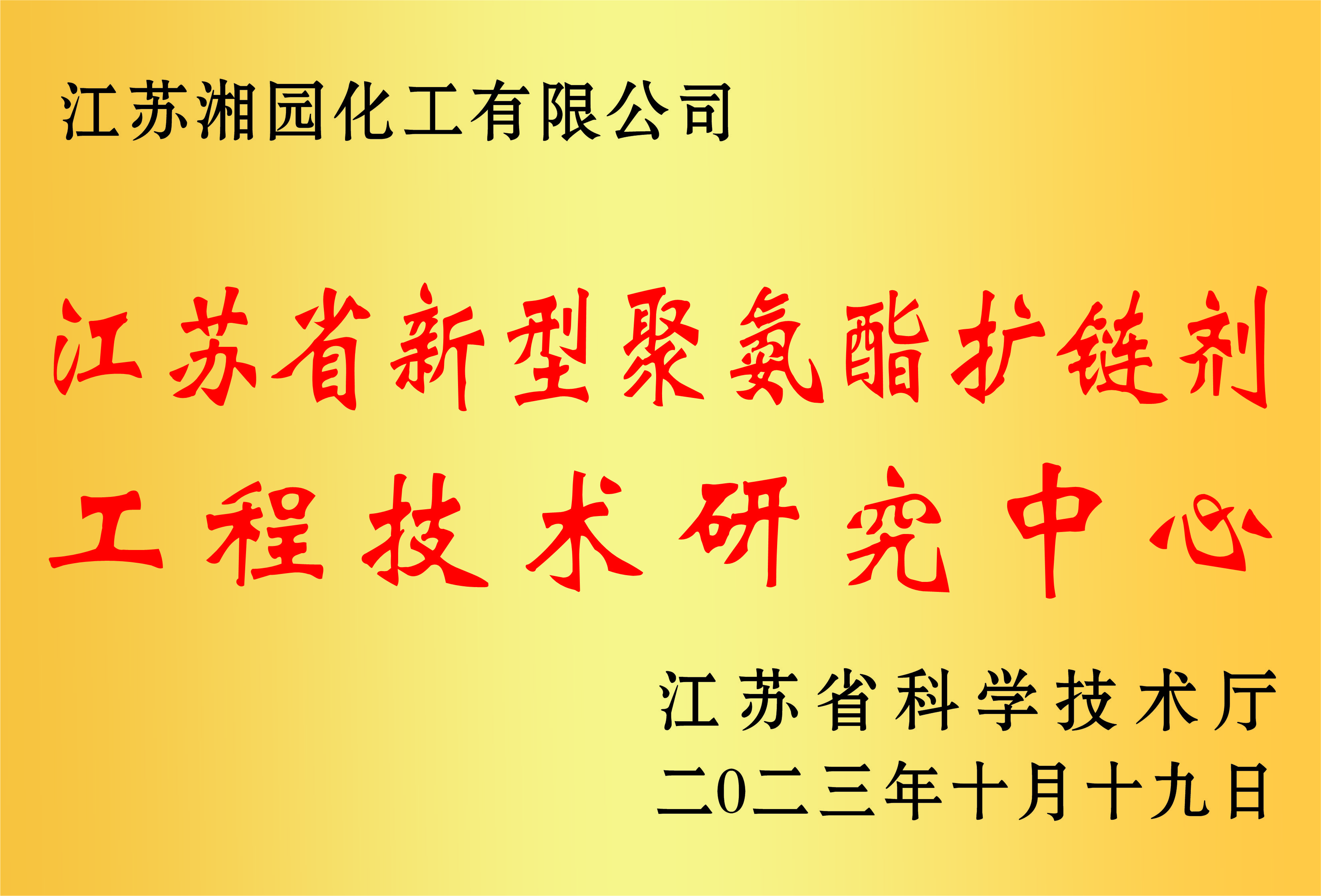 获评为江苏省新型聚氨酯扩链剂工程技术研究中心