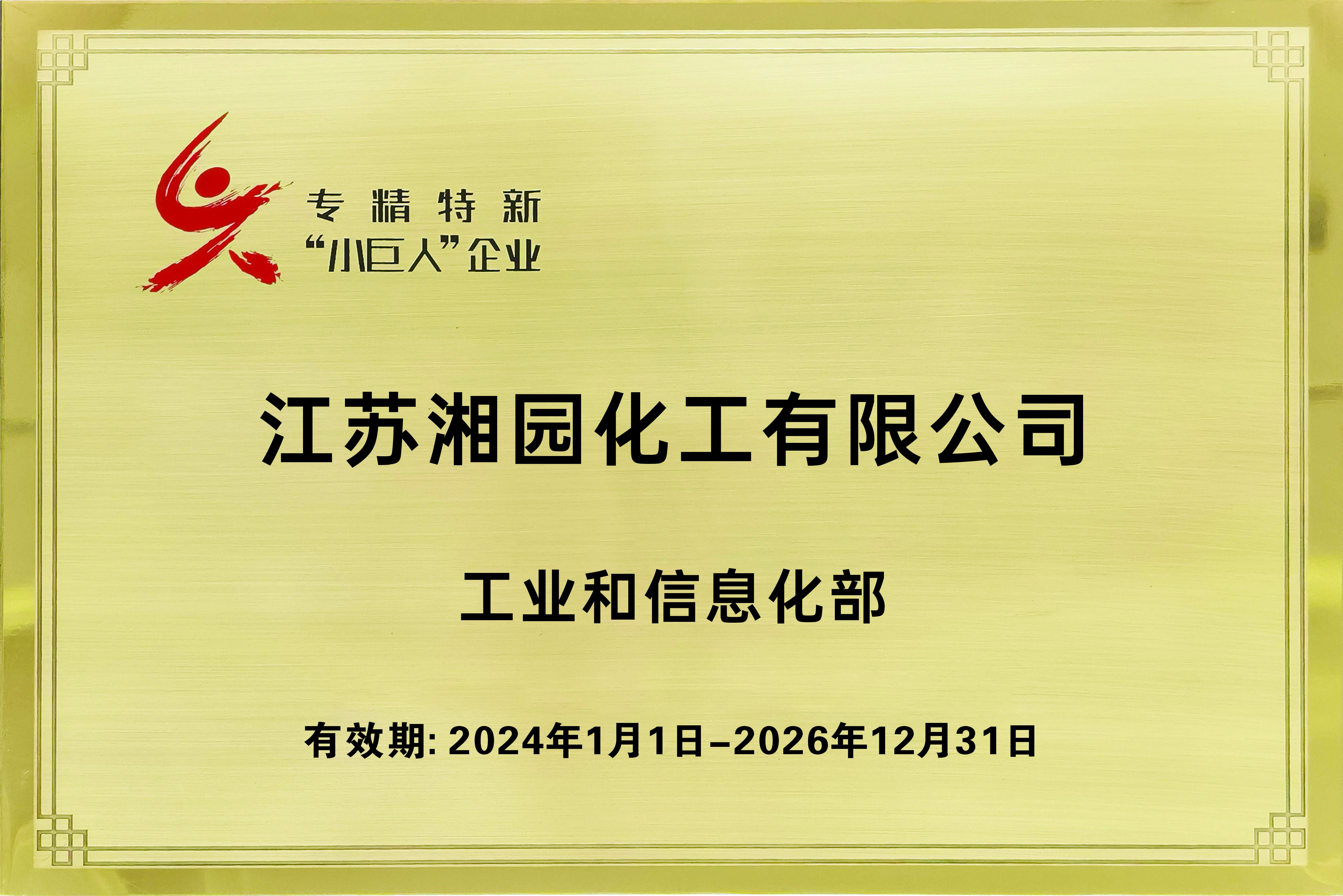 获评工业和信息化部专精特新“小巨人”企业(江苏best365足球官网)